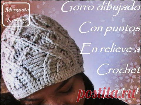 Gorro tejido a crochet dibujado con puntos en relieve parte 1 (diestro)