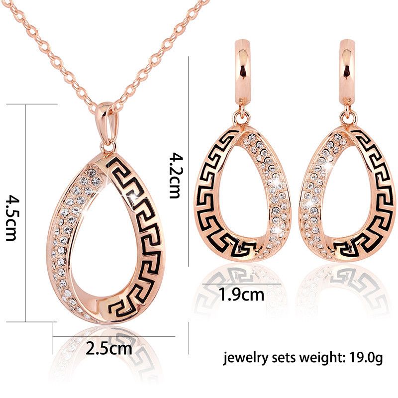 Покрытие из розового золота австрия кристалл кулон ожерелье серьги свадебные ювелирные изделия комплект ну вечеринку роскошь ювелирные изделия купить на AliExpress