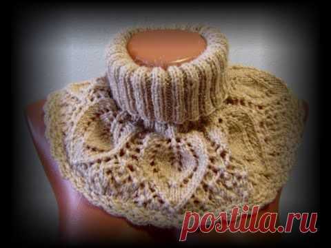 МК манишка с ажурными листьями спицами Вяжем с Людмилой Тен - YouTube