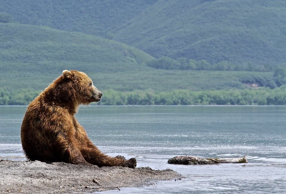 Alla Ganster, автор фото: «В ожидании захода нерки в один из ручьев на Курильском озере, медведь, выспавшись вдоволь, томно смотрел в даль огромного кратерного озера. Чуть позже идиллия была потревожена потоком лосося, и казавшееся спокойствие Камчатского бурого медведя сменилось на ловкость опытного хищника». | National Geographic Россия