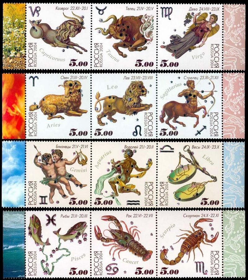 Zodiac symbols Stamp Russia 2004 - Знаки зодиака — Википедия Знаки зодиака