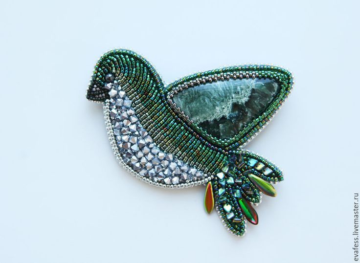 (185) Купить Брошь "Апрельская птичка" - болотный, зеленый, изумрудный, темно-зеленый, серебряный, птица | beading // embroidery 2