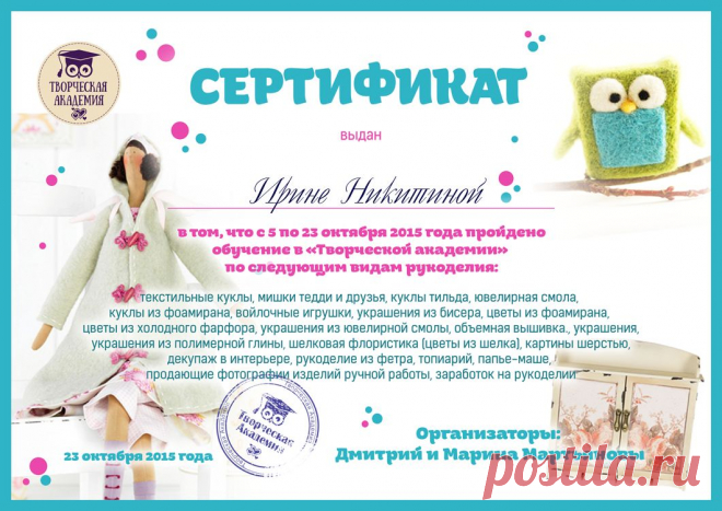 Получить Сертификат Конференции "Рукодельное Попурри"