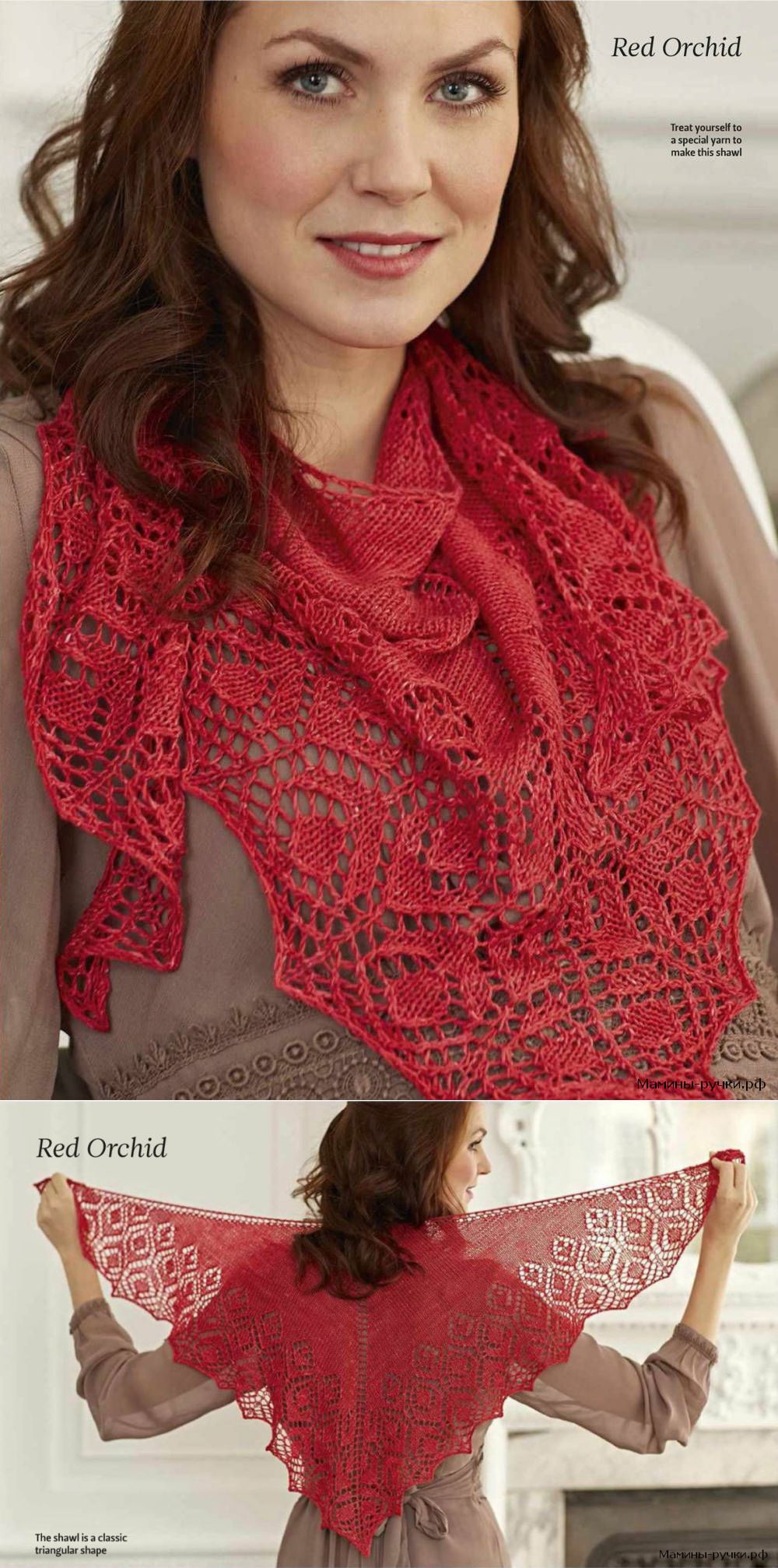 Вязаная спицами шаль "Красная орхидея" (Red Orchid). Схемы и описание - Модели спицами для нас красивых - Мамины ручки