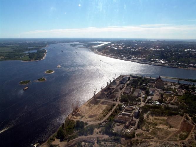 Слияния рек Ока и Волга в Нижнем Новгороде.