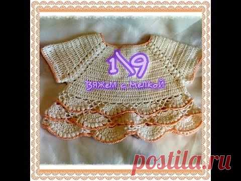 Вязание крючком для детей комплект для полугодовалой принцесски 6-9 мес. Платье 1 часть (реглан)