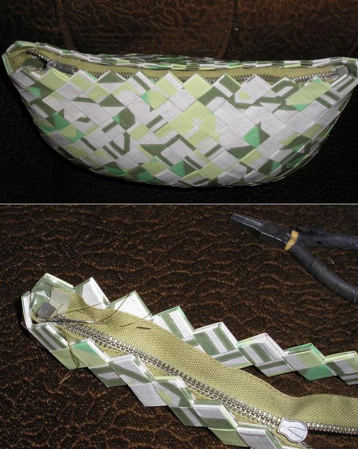 две сумочки из цветных обёрток. МК по пришиванию молнии.