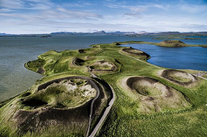 Живописная Исландия с высоты птичьего полёта.Озеро Миватн (Myvatn)