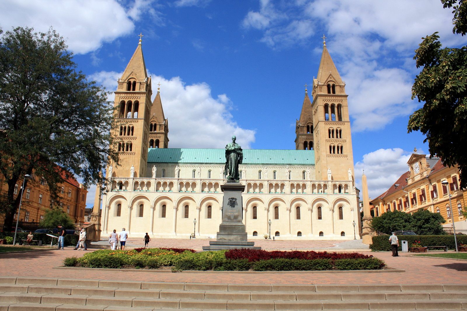 Яндекс.Фотки Базилика Святых Петра и Павла на Домской площади. Длина собора составляет 70 метров, ширина — 20 метров. Высота нефа — 22 метра, башен собора — 60 метров, колокол западной башни — один из самых больших в Венгрии. С кафедры собора проповедовал Янус Паннониус, орган собора помнит пальцы Ференца Листа.