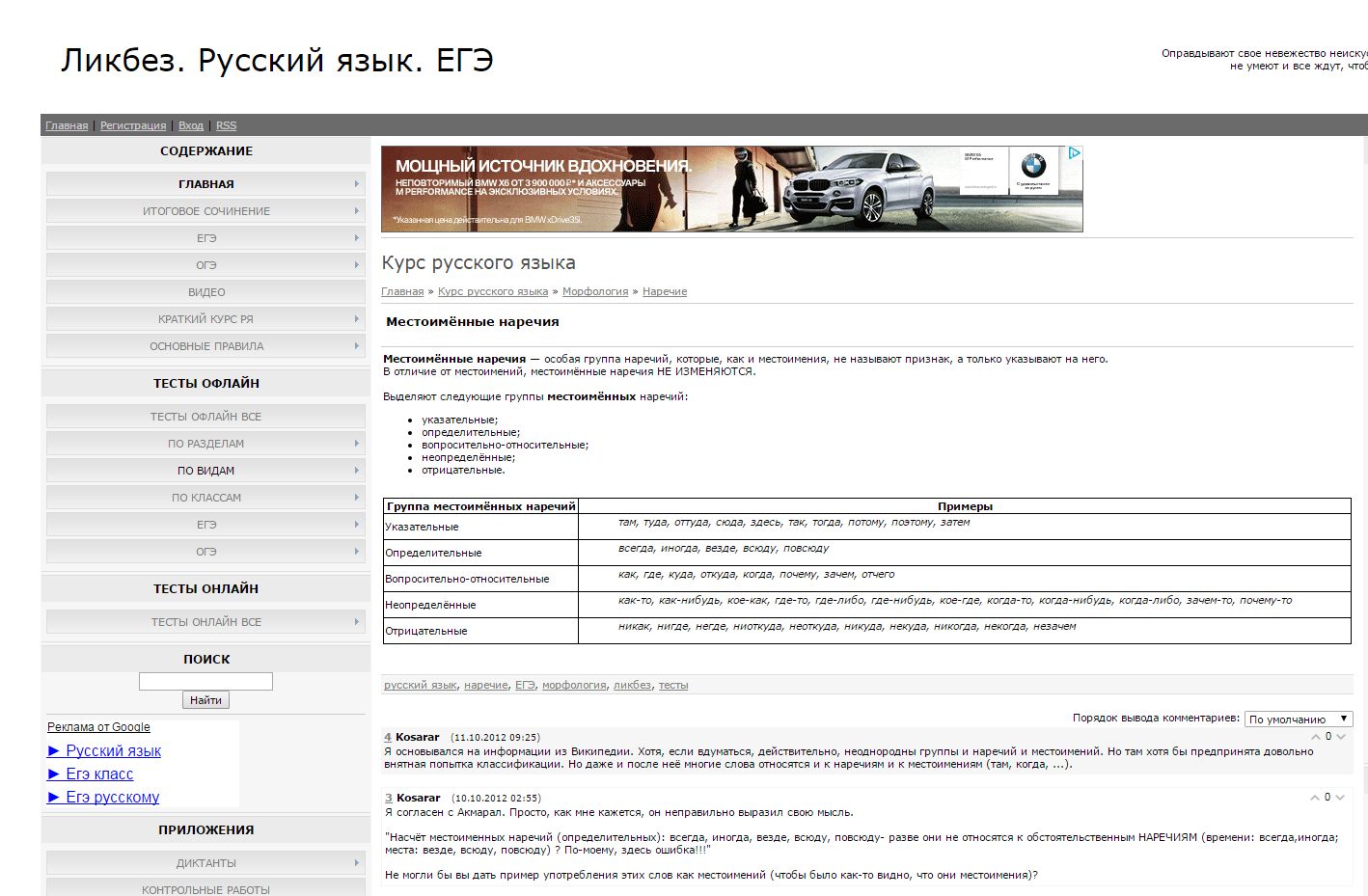 Местоимённые наречия - Наречие - Морфология - Курс русского языка - ЕГЭ по русскому языку. Тесты по русскому языку. Ликбез