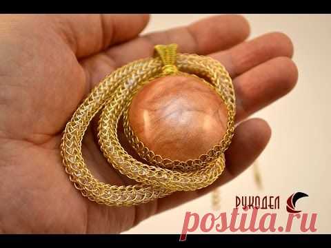 Оплетаем подвеску кабошон, кристалл проволокой в технике Викинг Книт - YouTube