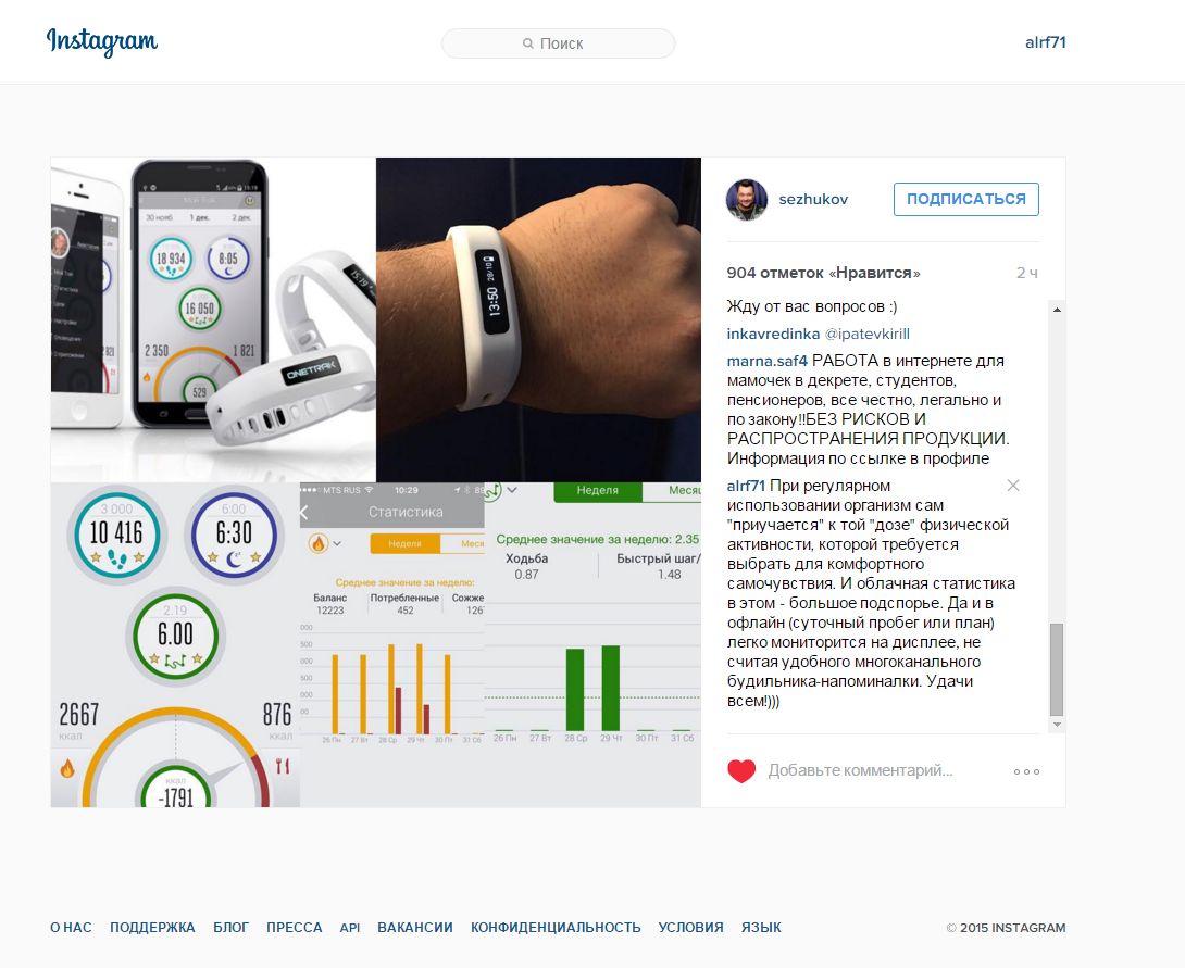 Сергей Жуков в Instagram: «Продолжаю работать над собой! На днях меня вооружили умным браслетом ONETRAK, чтобы было проще сбрасывать вес и следить за здоровьем. Эта штука считает, сколько я двигаюсь, сколько ем, сколько трачу калорий, и много всего еще. Теперь перед едой выбираю в приложении блюдо (браслет подключается к смартфону), и смотрю, сколько в нем калорий, белков, жиров и углеводов. Стараюсь больше двигаться, чтобы сжечь все излишки...