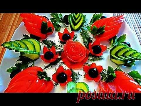 Украшение тарелки из огурца и помидора! Decoration of cucumber and tomato!