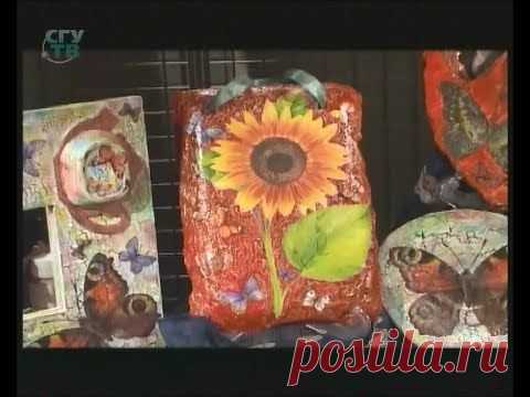 Декупаж. Делаем панно с подсолнухами, чайник и зеркало из строительного гипса. Мастер класс
