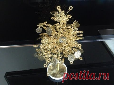 Золотое денежное дерево из бисера. Осеннеее дерево. Autumn golden tree.
