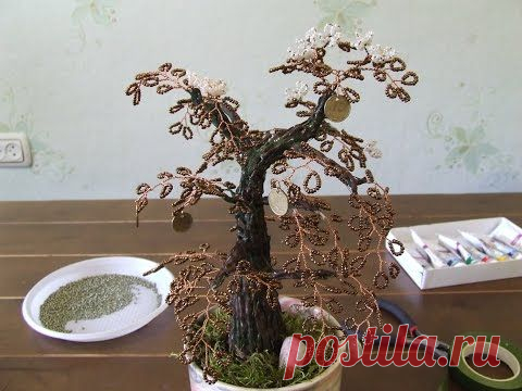 Бонсай Денежное дерево из бисера своими руками часть 1