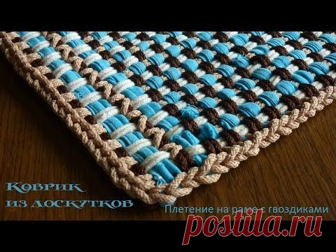 Плетение ковриков из лоскутков на рамке с гвоздиками