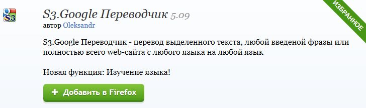 S3.Google Переводчик :: Дополнения Firefox
