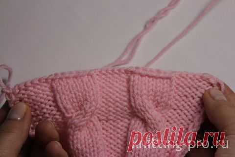 Особенности закрытия петель полотна с перехватами. Чтобы при закрытии детали с косами, жгутами и всевозможными переплетениями избежать растягивания детали по линии закрытия петель, нужно прибегнуть к следующему приему.