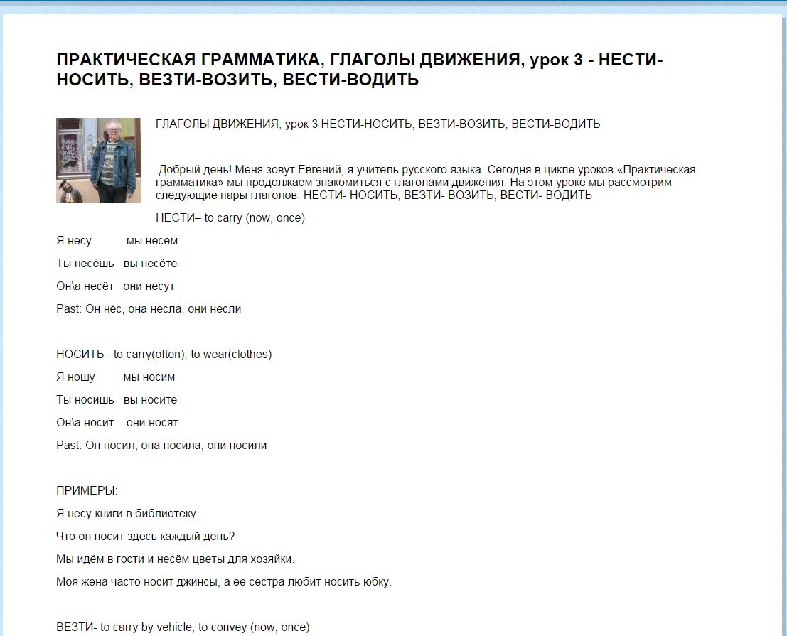 ПРАКТИЧЕСКАЯ ГРАММАТИКА, ГЛАГОЛЫ ДВИЖЕНИЯ, урок 3 - НЕСТИ-НОСИТЬ, ВЕЗТИ-ВОЗИТЬ, ВЕСТИ-ВОДИТЬ