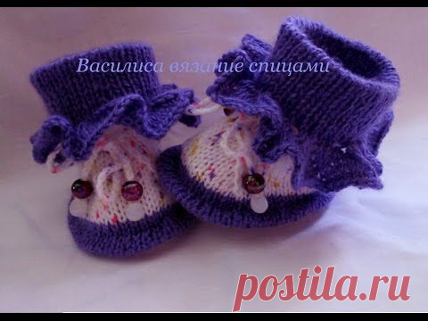 Пинетки спицами с рюшами knitting baby booties - YouTube