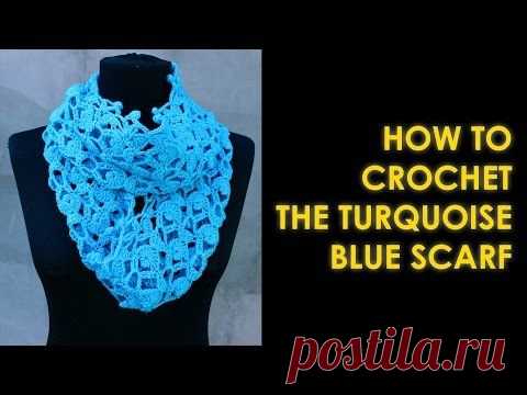 How to crochet scarf Turquoise Blue Scarf by WWWIKA - YouTube