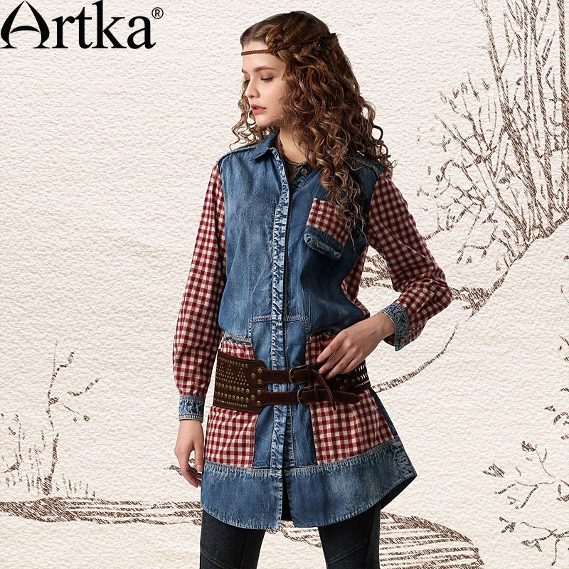 Джинсовая туника с клетчатыми вставками и рубашечным воротником и рукавами, 43861140576 купить за 6300 руб. с доставкой по России, Украине, Беларуси и миру | Туники | Artka: интернет-магазин обуви и одежды Artka