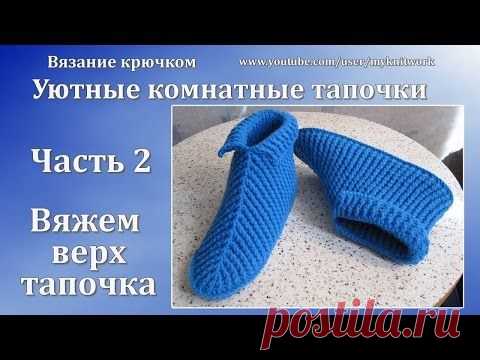 Вязание крючком. Уютные Комнатные тапочки. Часть 2/2.
