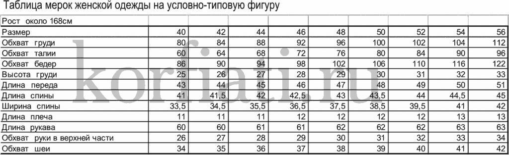 Женские мерки на типовую фигуру от Анастасии Корфиати