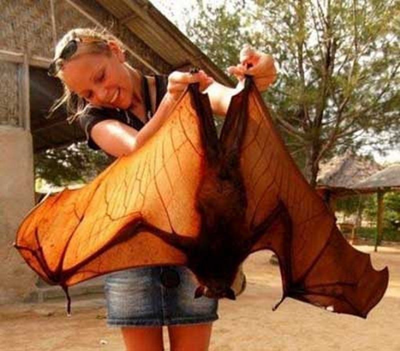 Людям очень сильно повезло, что эта гигантская летучая лисица - плодоядный вегетарианец )