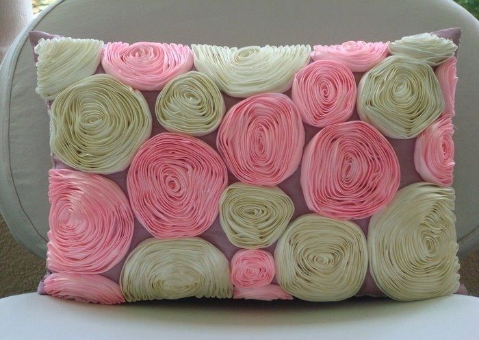 Салфетки и подушки, украшенные розами из лент — Рукоделие