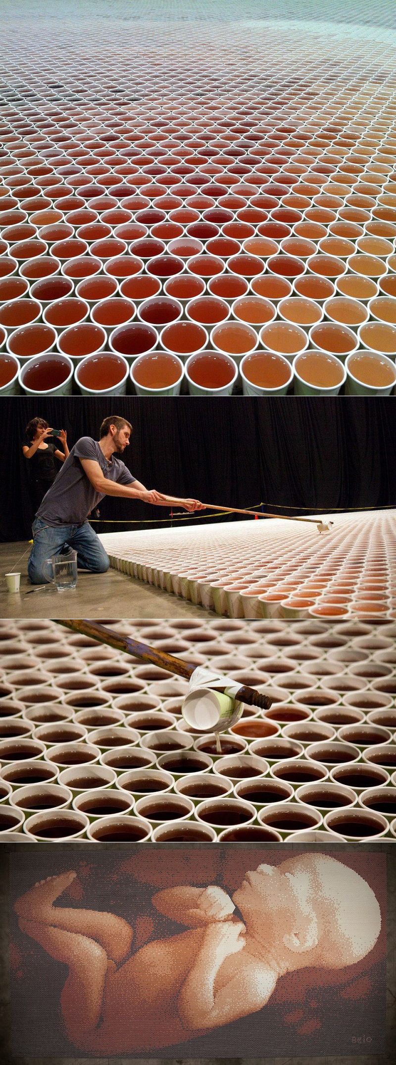 Он поставил 66 000 стаканчиков с водой на пол. Когда зрители подошли ближе, у них отняло дар речи!