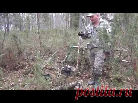 Костер на пеньке, без использования ножа и топора.