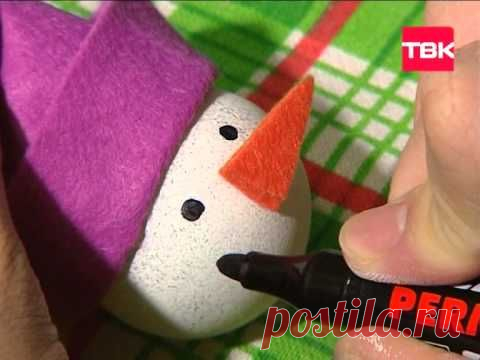 HAND MADE Игрушка из лампы накаливания "Снеговик в колпаке"