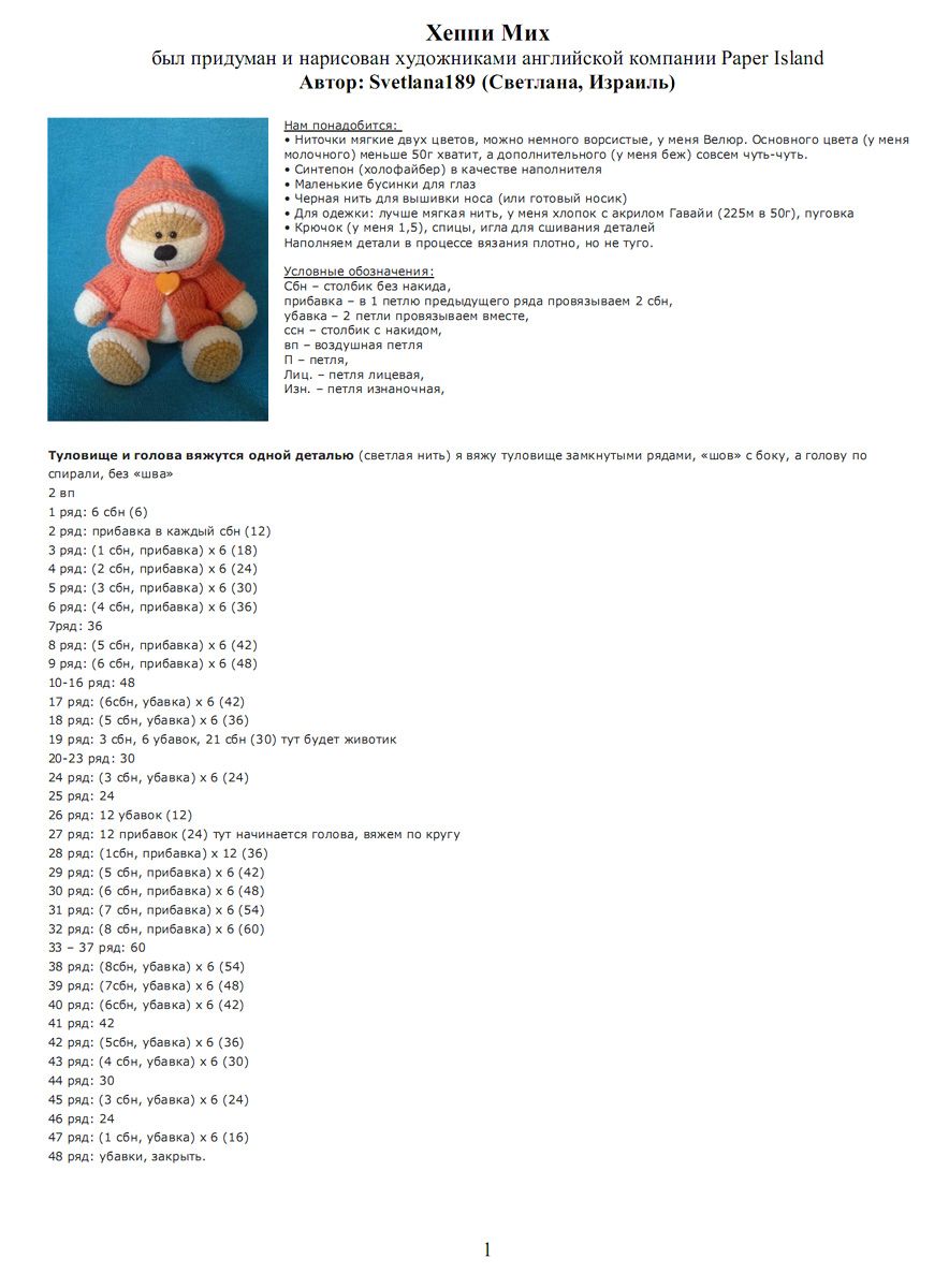 Все РукоТворчество: Мишка "Хеппи мих" вязаный крючком. Описание