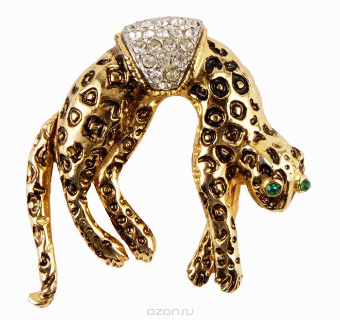 Брошь "Леопард" в винтажном стиле. Бижутерный сплав, австрийские кристаллы. Начало XX века - купить модные аксессуары от известных брендов по лучшей цене в интернет-магазине OZON.ru