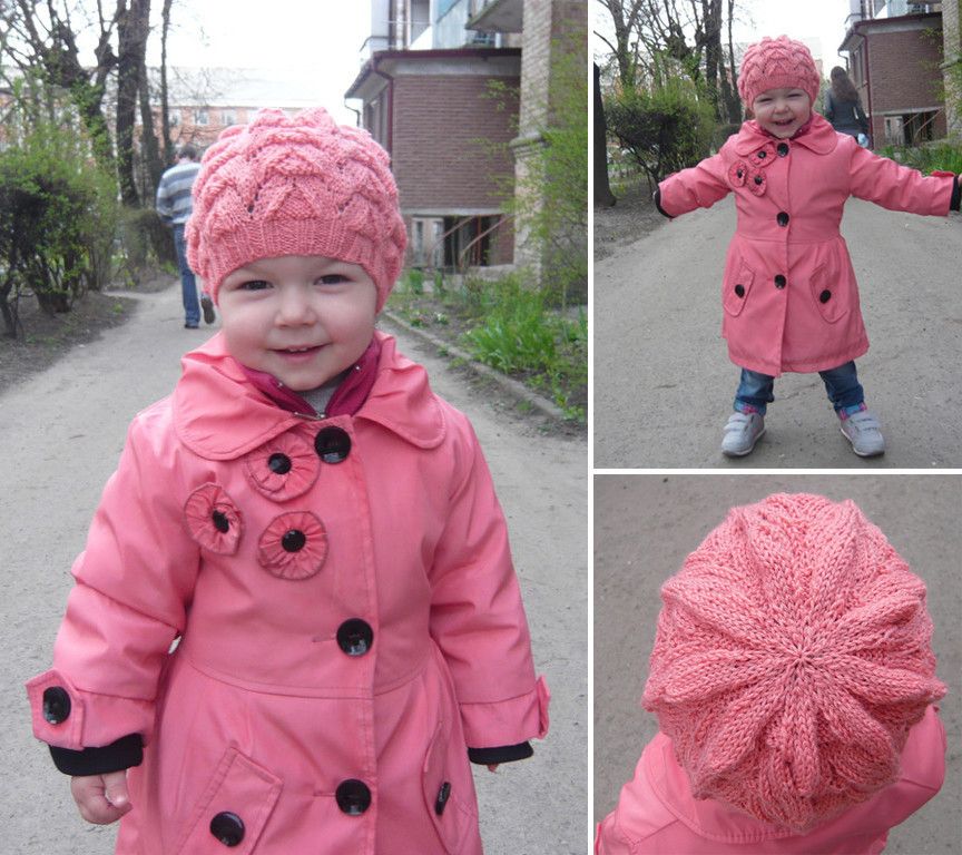 Берет девочкеОписание: Схема: http://prjaga.ru/vyazanie-dlya-zhenshchin/shapka-beret/vyazanyj-beret-spitsami-s-ob-jomnym-tsvetkom