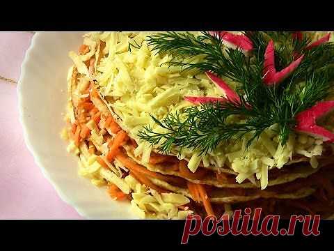 Закусочный торт из курицы с морковью - YouTube