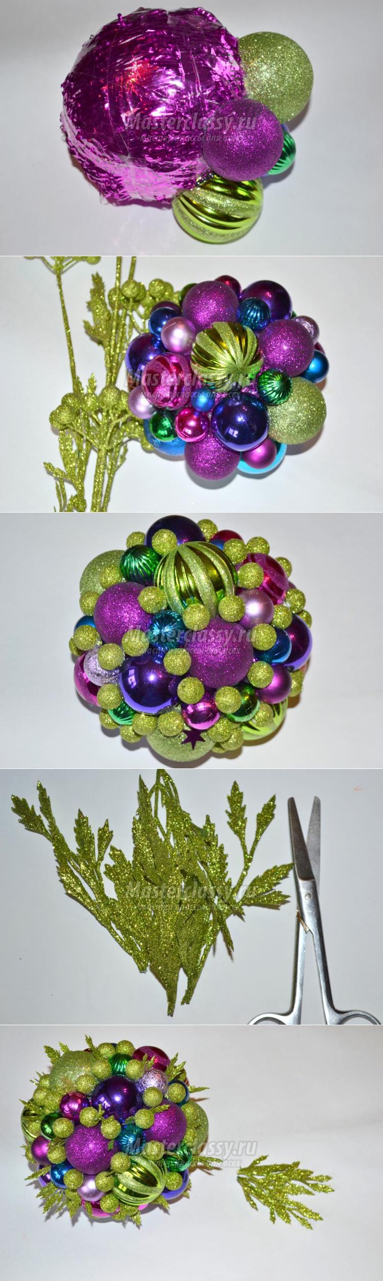 Новогодний топиарий из елочных шаров. Мастер-класс с пошаговыми фото