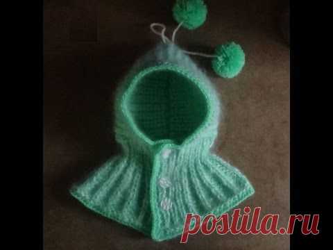 Шапка-капюшон ( вязание спицами). Вариант 1 - YouTube
