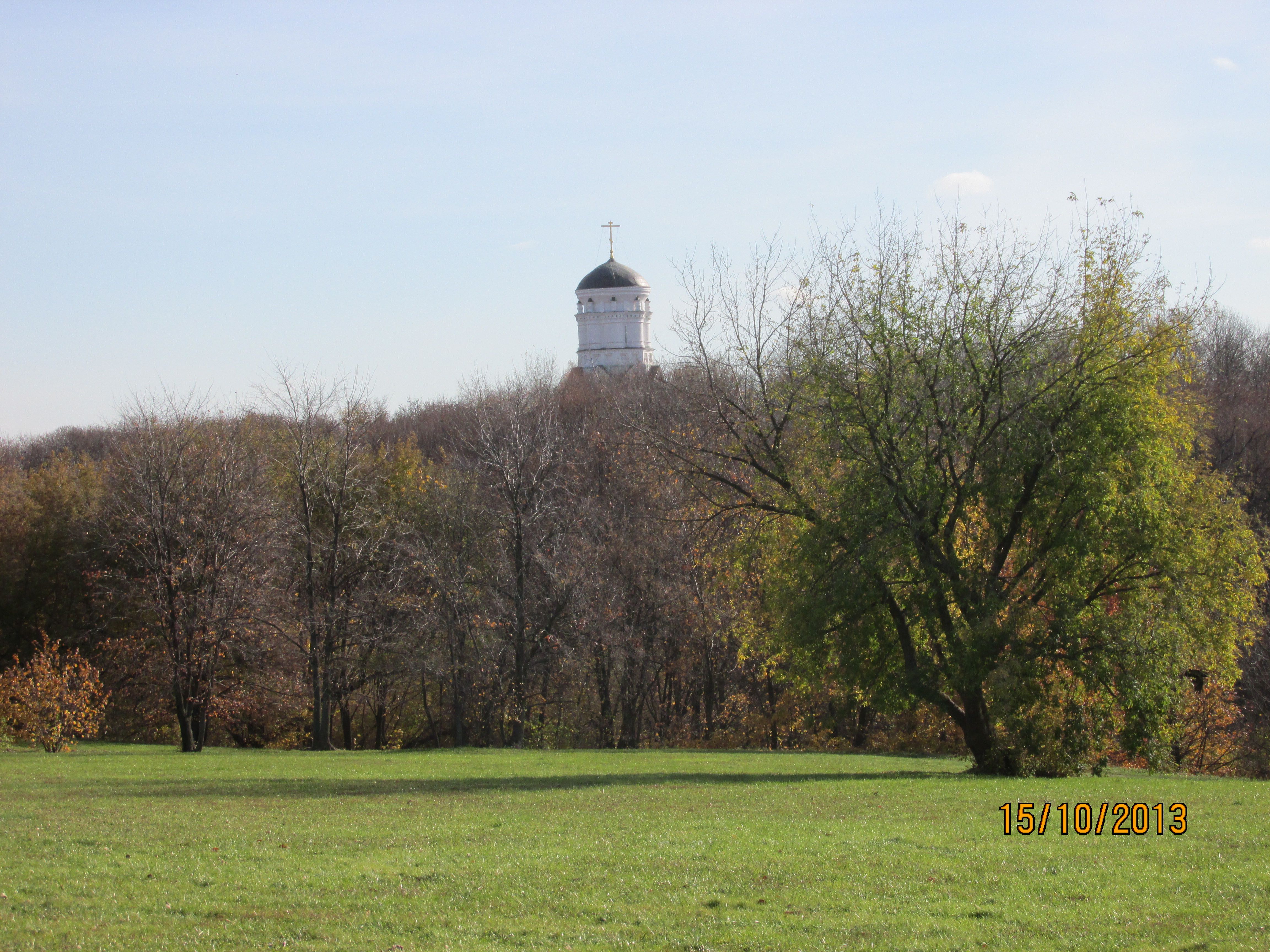 Парк музея Коломенское. Виден купол церкви в Дьякове