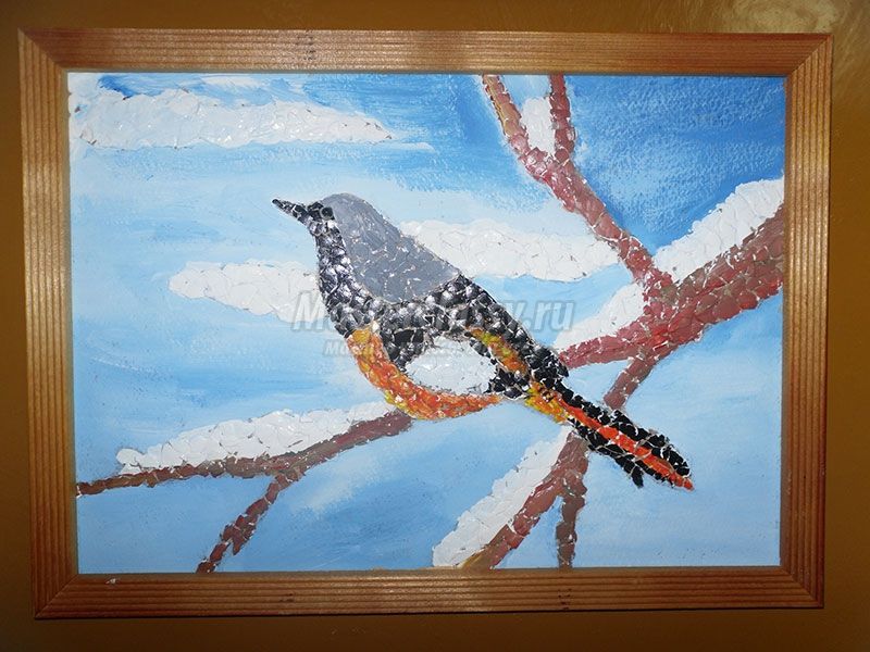 Поделка из яичной скорлупы. Панно "Горихвостка". Мастер-класс