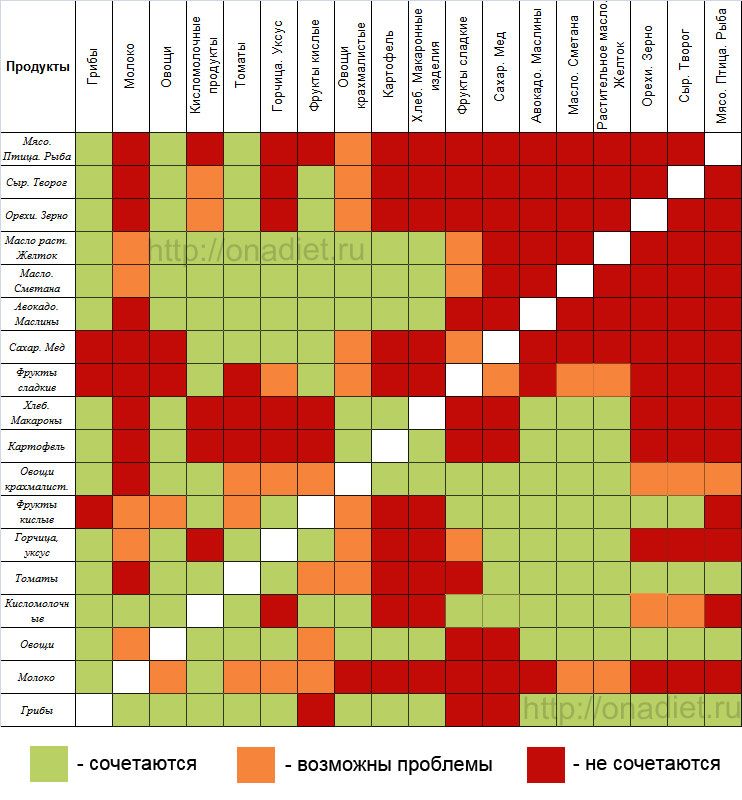 Таблица сочетания продуктов