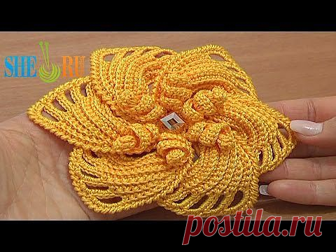 ▶ Вязание крючком Урок 59 Часть 1 из 2 Цветок с шестью большими лепестками и спиральками в центре - YouTube