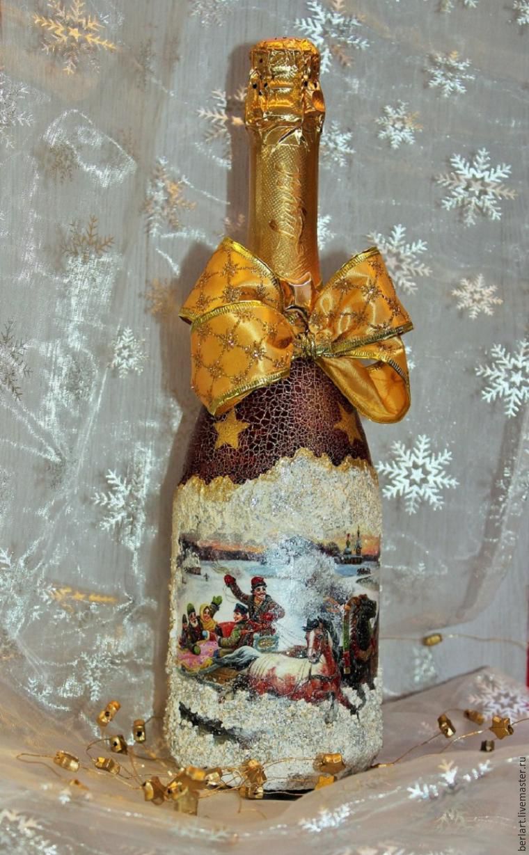 Мастер-класс по декорированию бутылки шампанского в технике декупаж - Ярмарка Мастеров - ручная работа, handmade