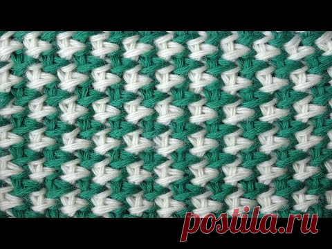 Tunisian crochet pattern Двухцветная путанка Тунисский узор крючком 5