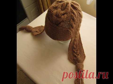 ВЯЗАНИЕ СПИЦАМИ ШАПКА С УШКАМИ С УЗОРАМИ КОСЫ! Видео урок. knitting.