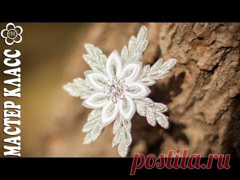 DIY: Snowflake Kanzashi / Снежинка на шпильке (Уроки Канзаши) - YouTube