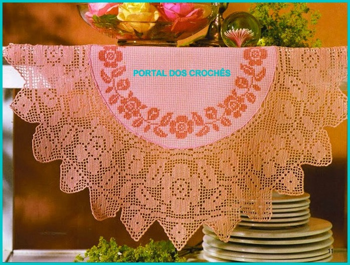 КРУГЛАЯ САЛФЕТКА С ЦВЕТОЧНОЙ ФИЛЕЙНОЙ КАЙМОЙ