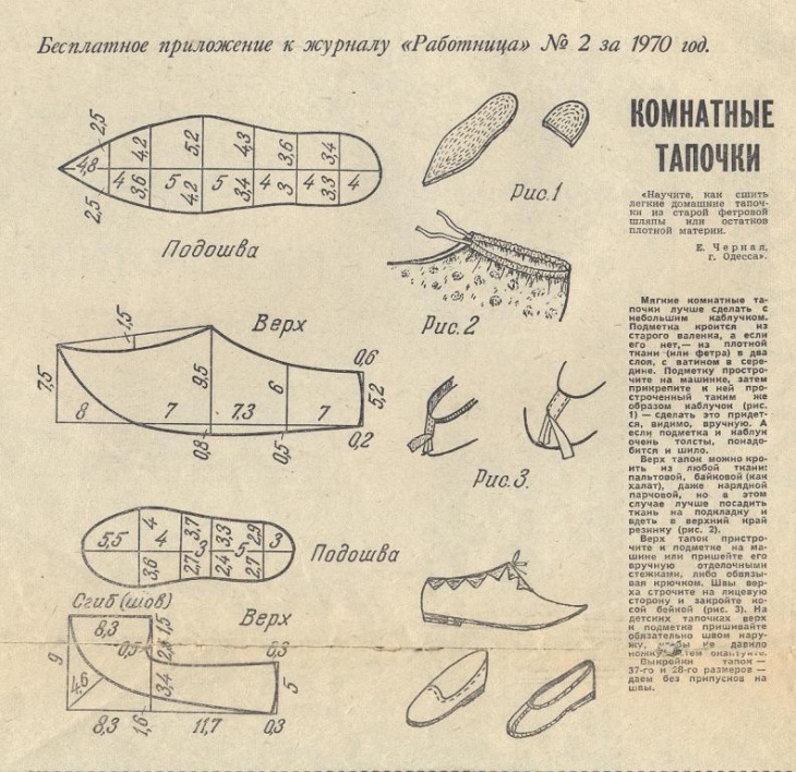 Тапочки, выкройка из "Работницы" / Выкройки ретро / ВТОРАЯ УЛИЦА